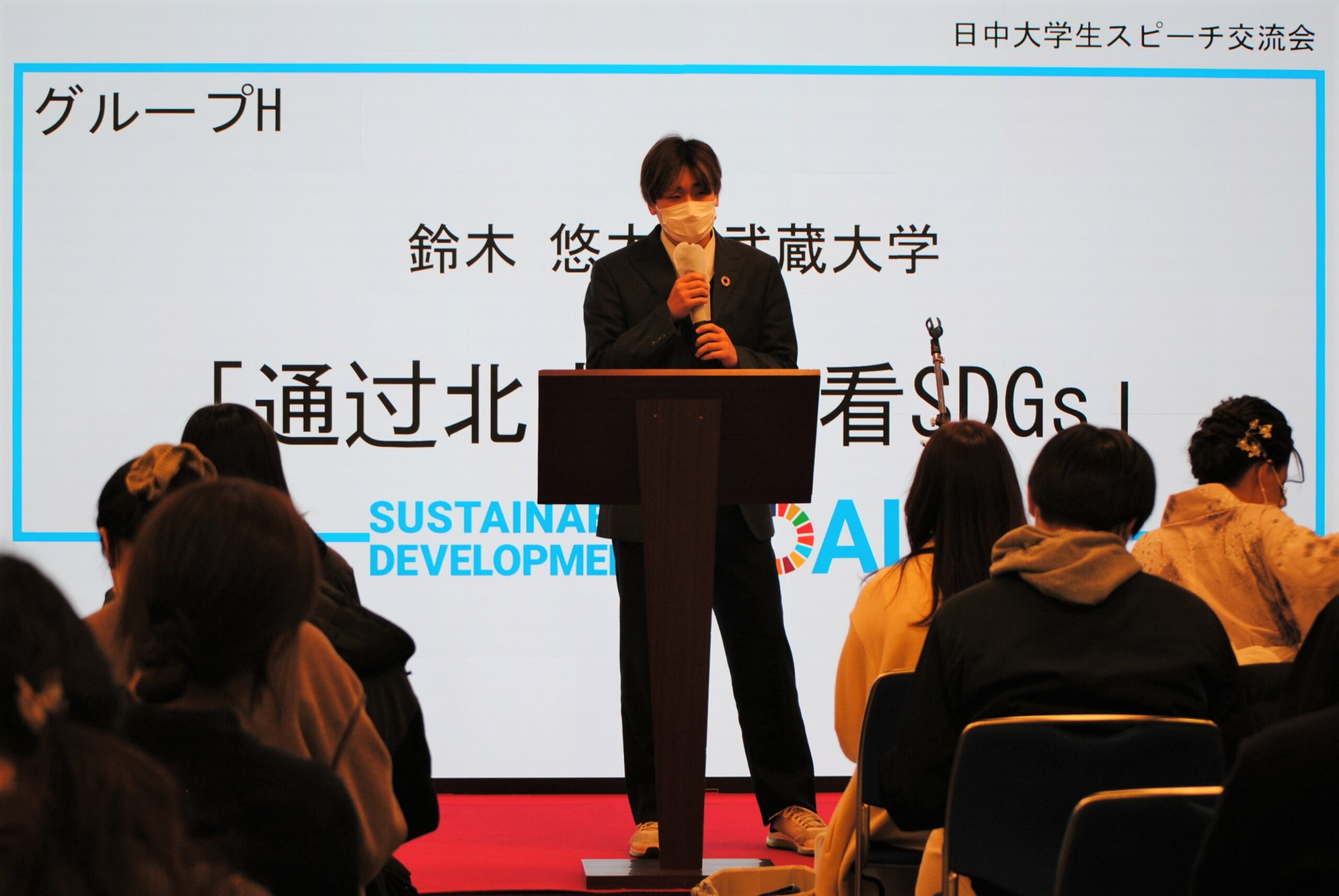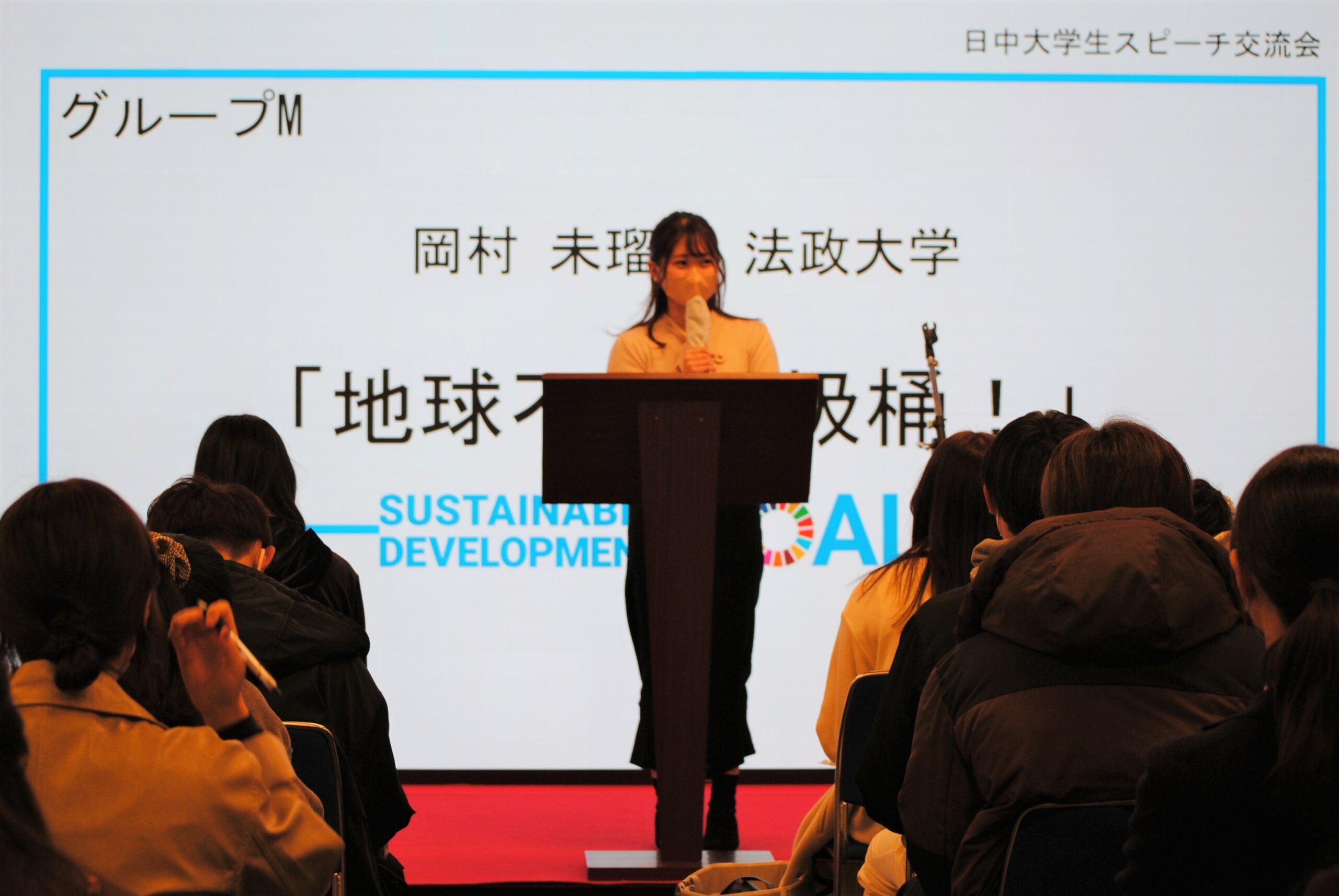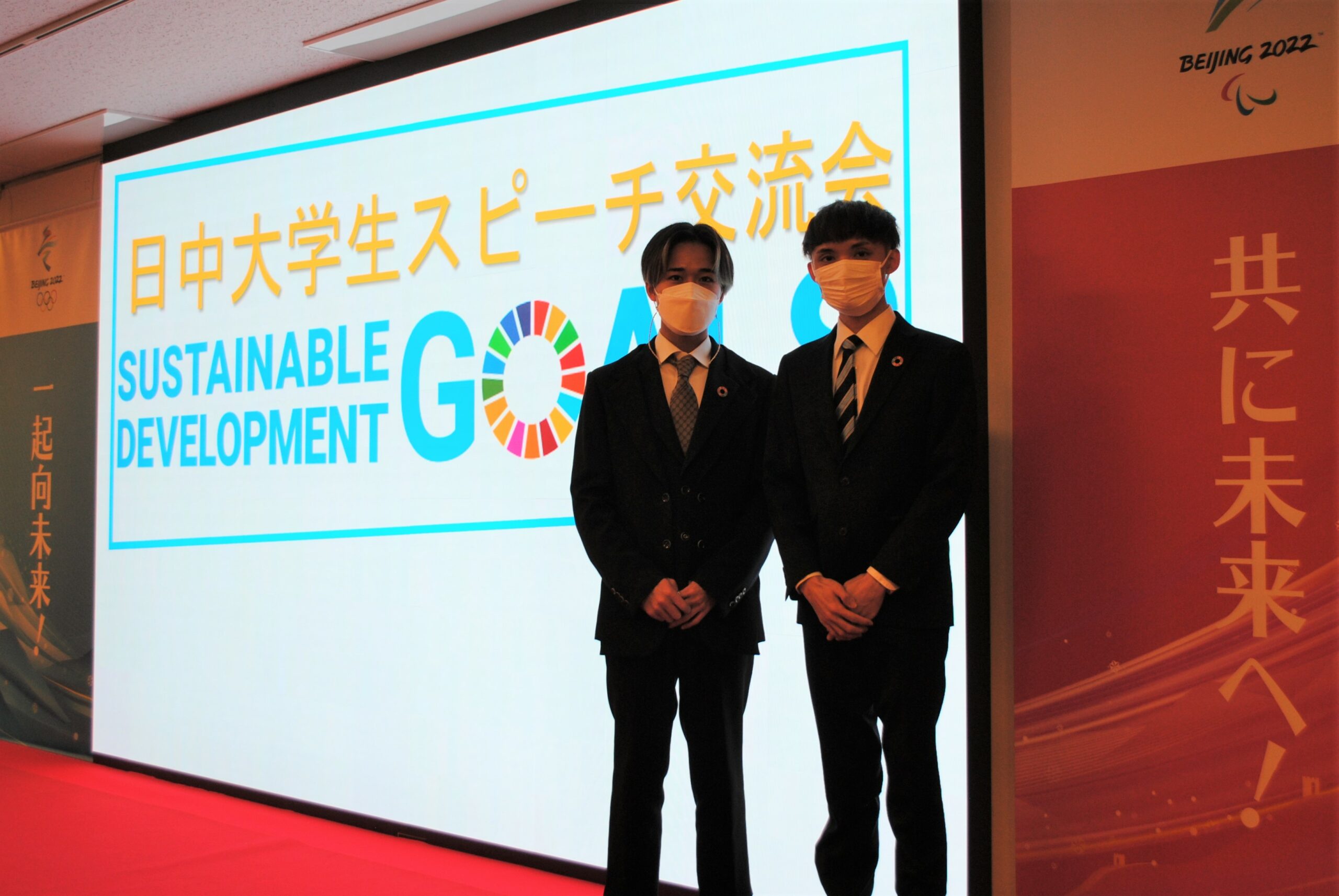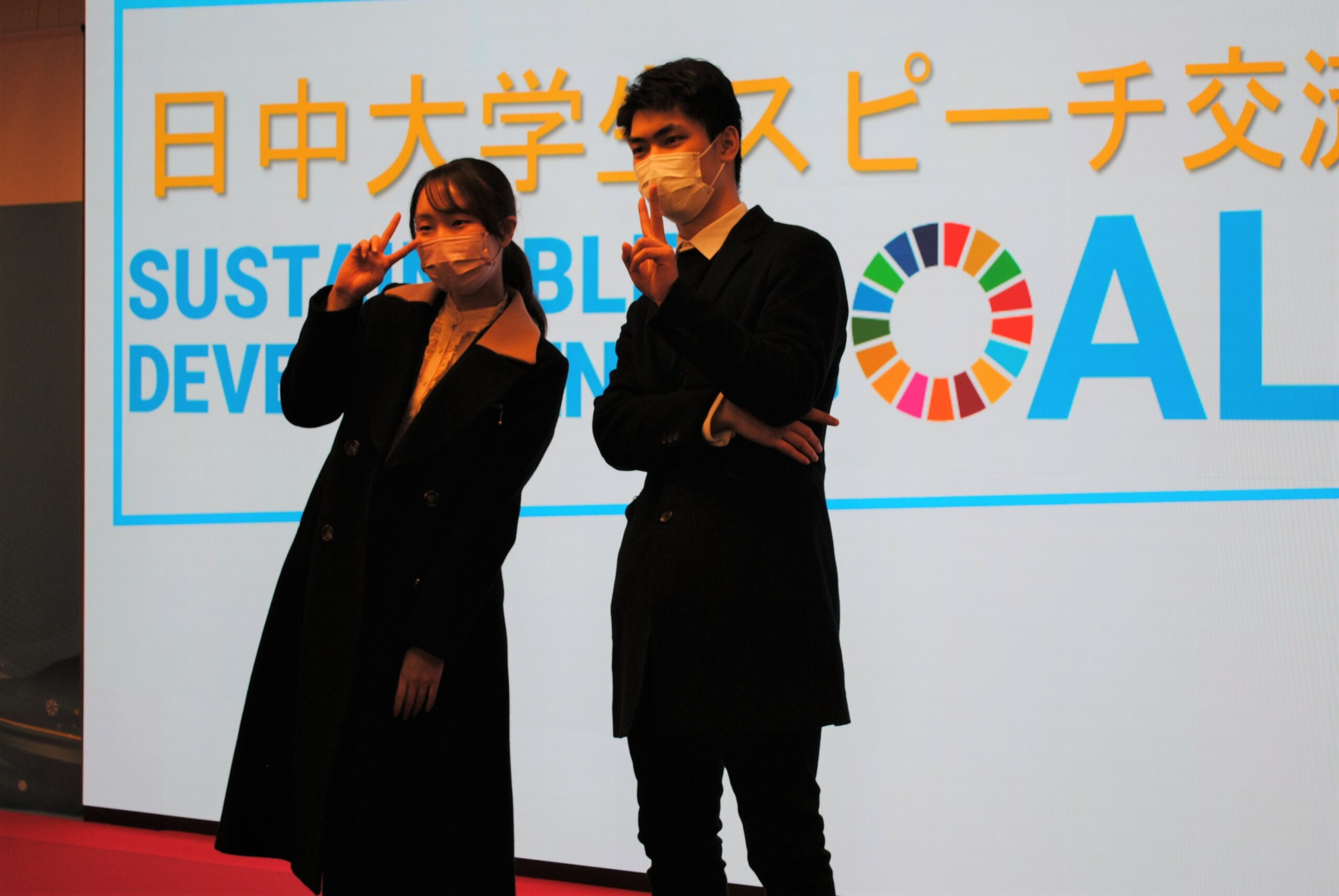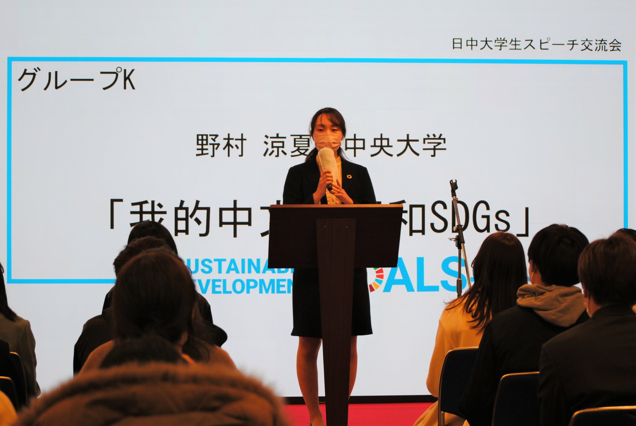 全国230名の応募者から選ばれた日中の大学生30名が、二人一組で相互学習を行いスピーチを作成・発表をしました。第1回目となる今回は「日中の若者が考えるSDGs」を大テーマとし、日本人学生は中国語で、中国人学生は日本語でスピーチを作成。交流会当日は3ヶ月の相互学習の成果をスピーチを通じて発表しました。