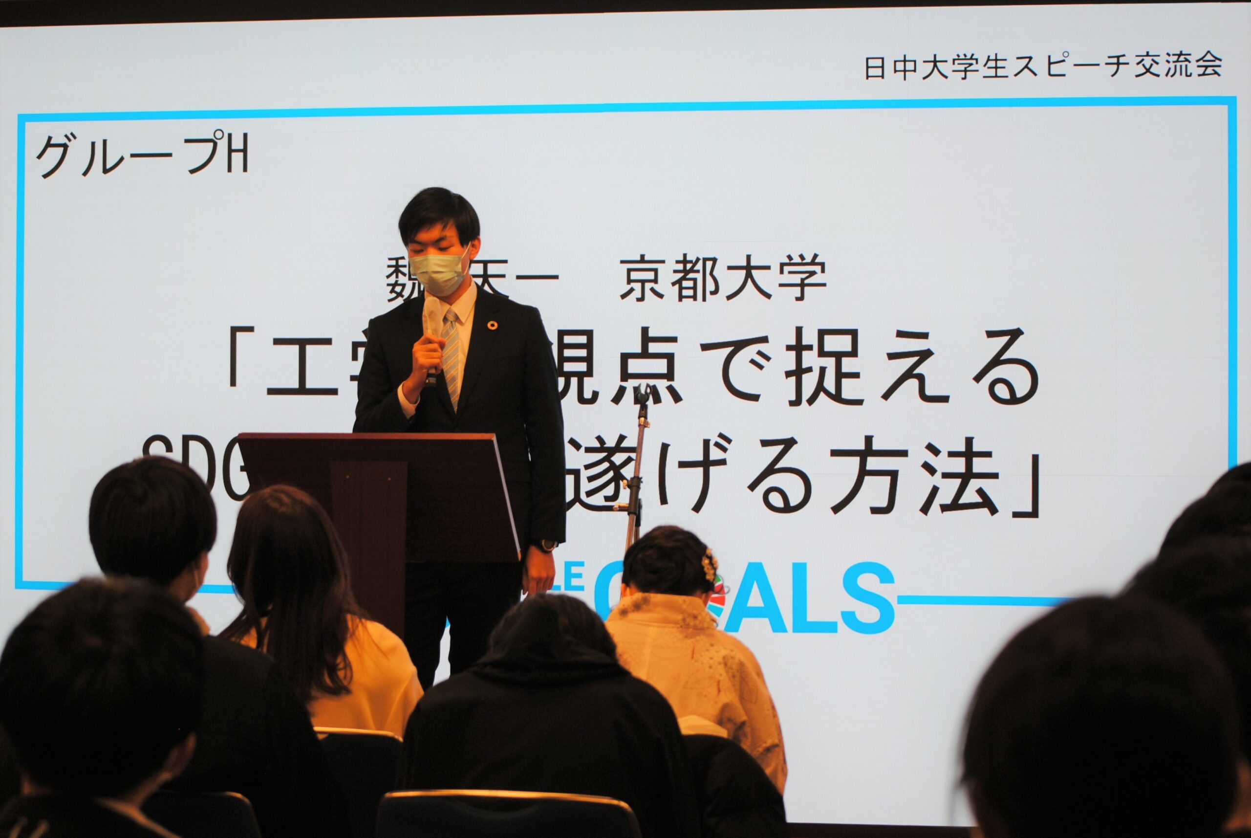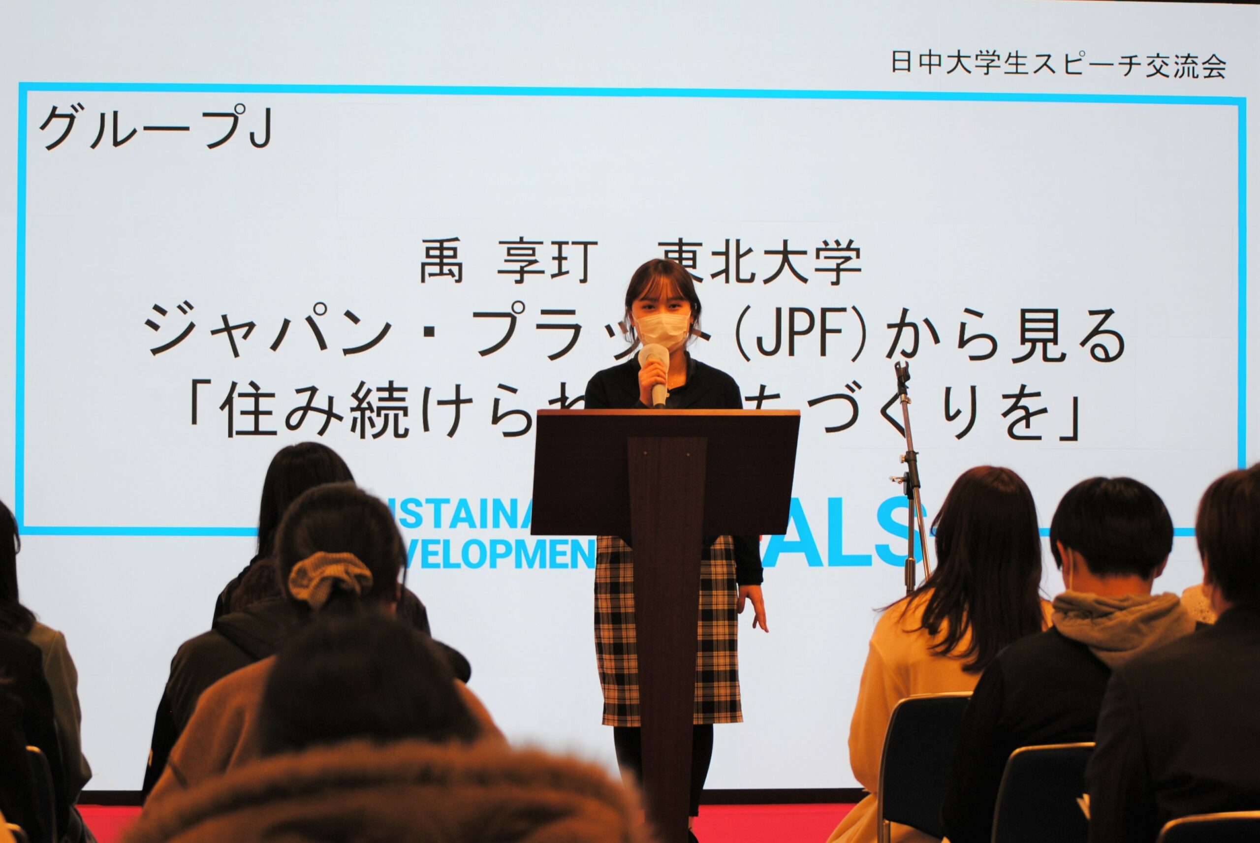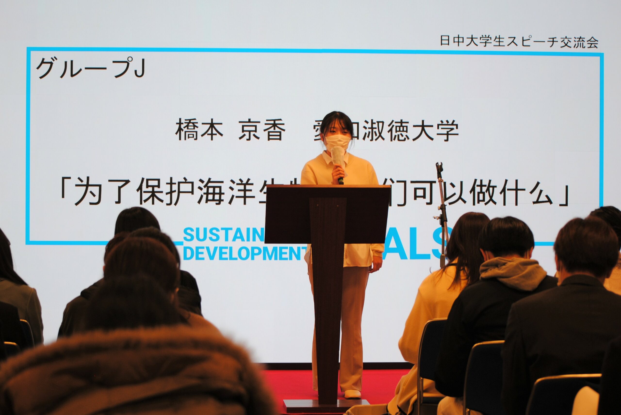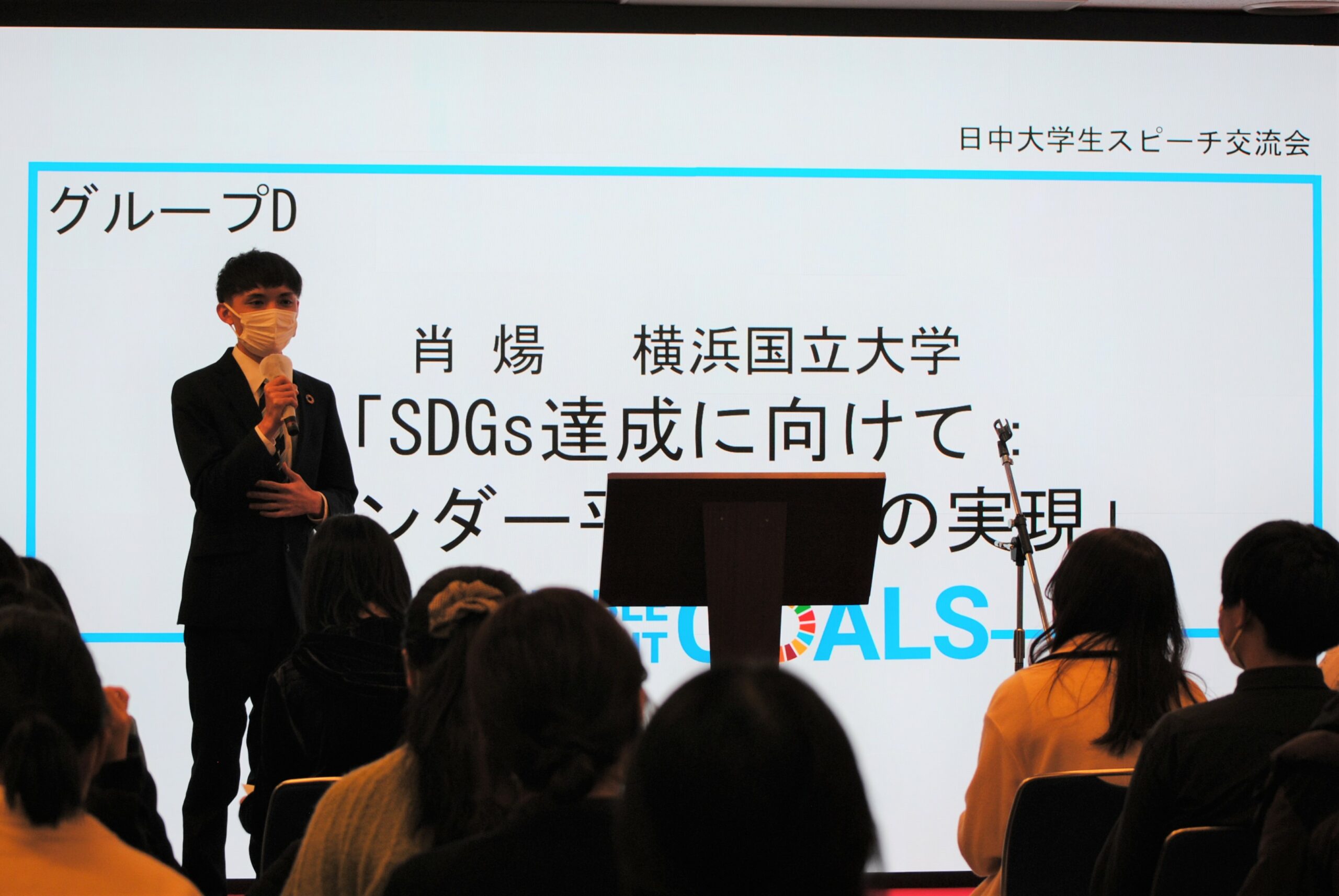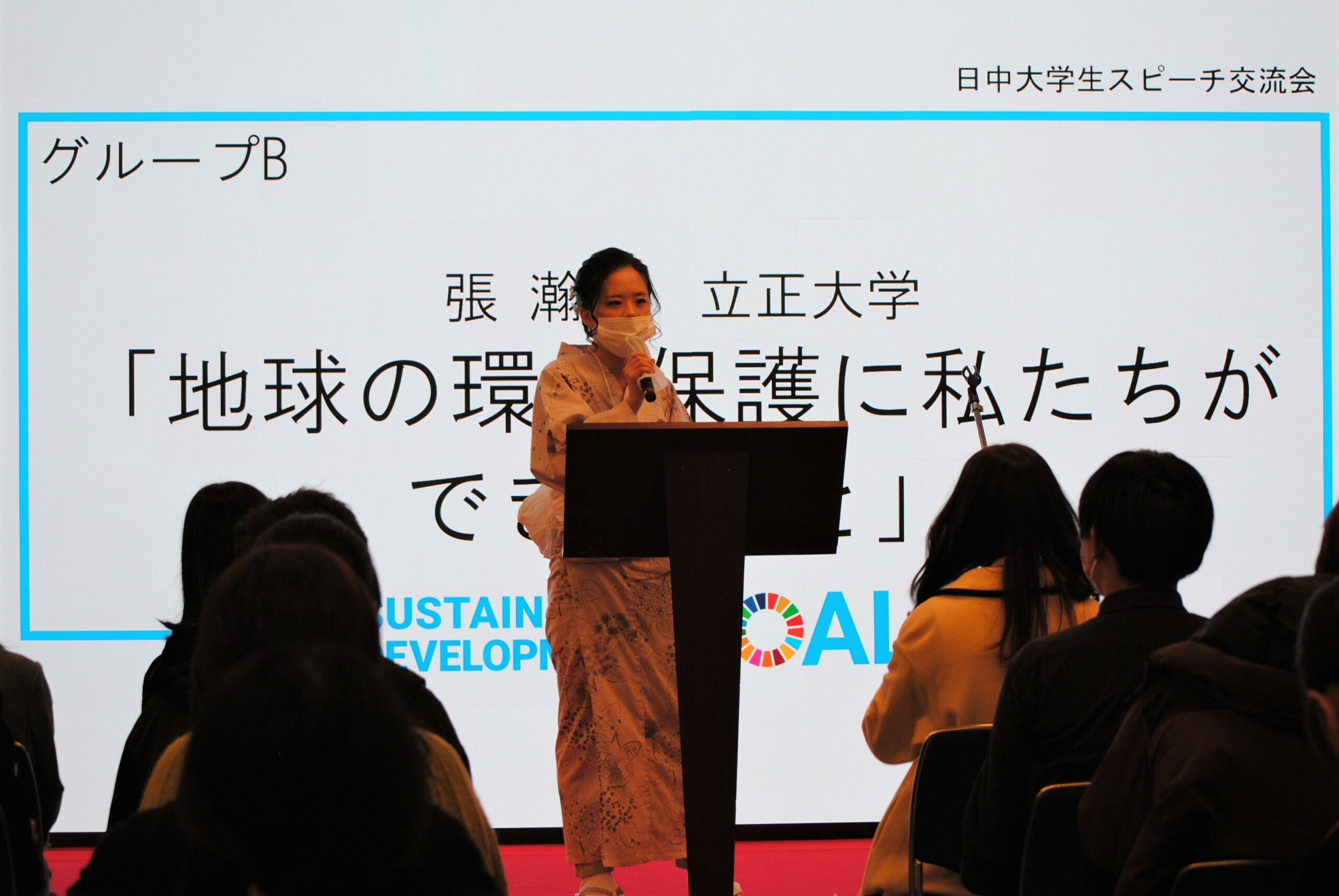 全国230名の応募者から選ばれた日中の大学生30名が、二人一組で相互学習を行いスピーチを作成・発表をしました。第1回目となる今回は「日中の若者が考えるSDGs」を大テーマとし、日本人学生は中国語で、中国人学生は日本語でスピーチを作成。交流会当日は3ヶ月の相互学習の成果をスピーチを通じて発表しました。