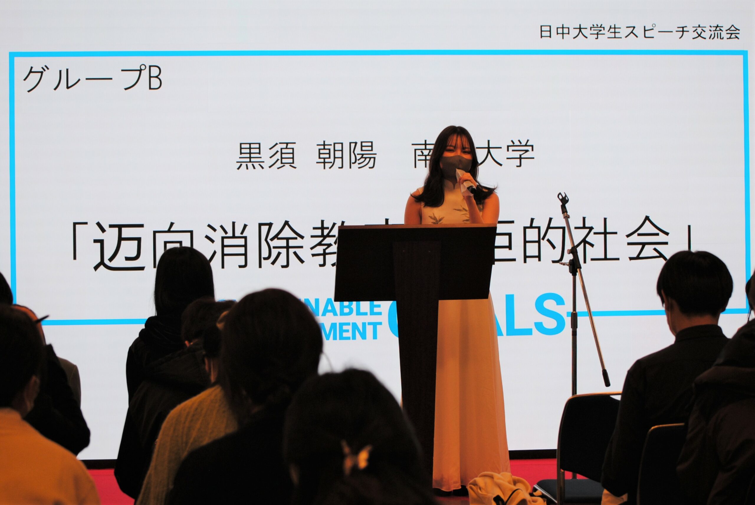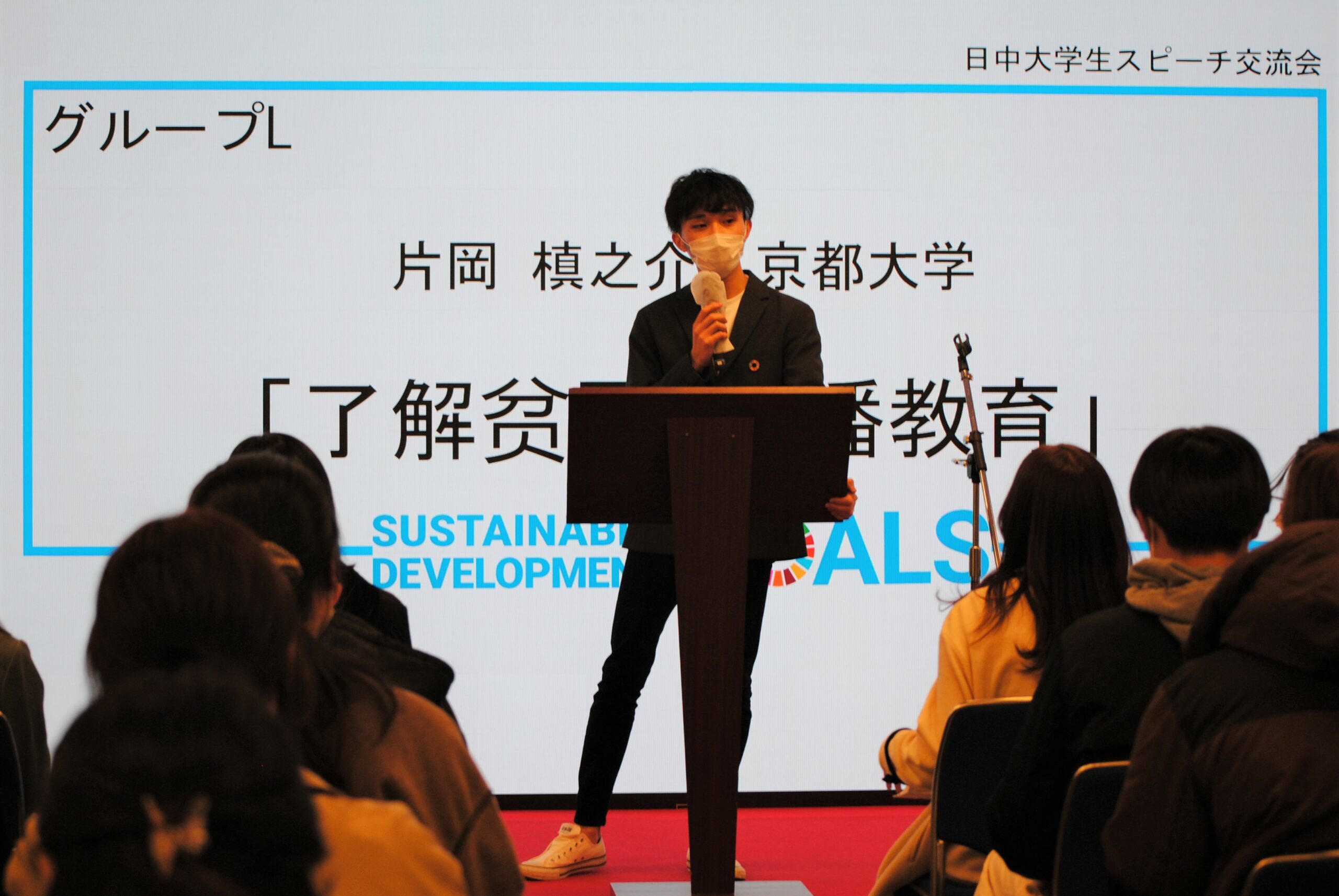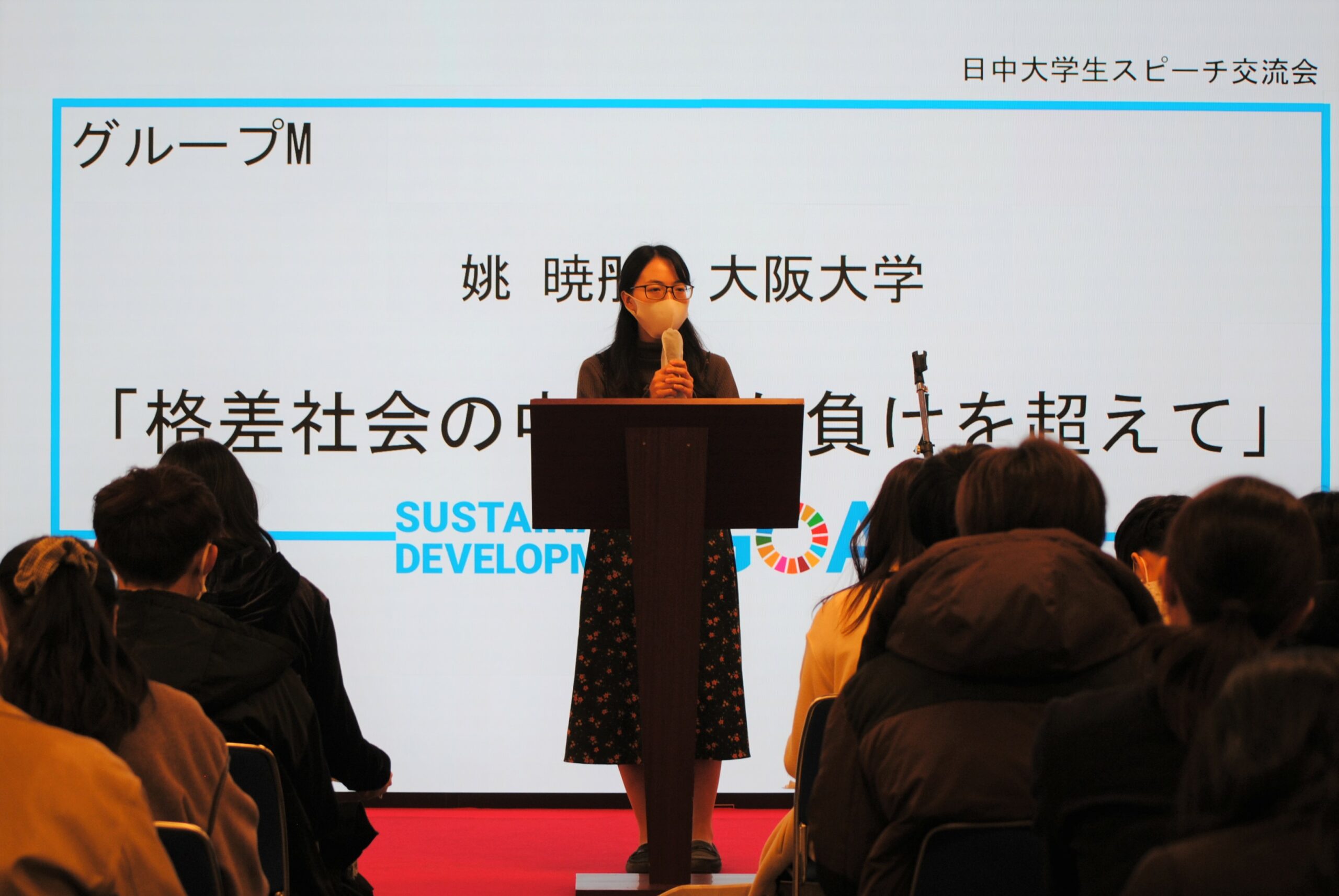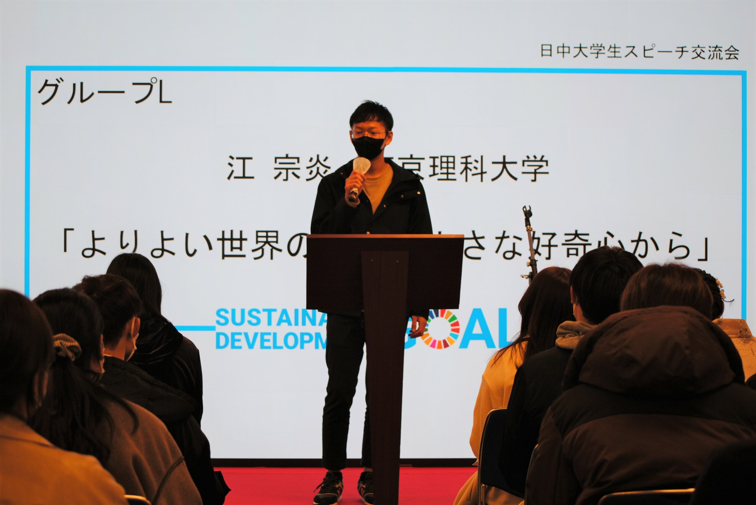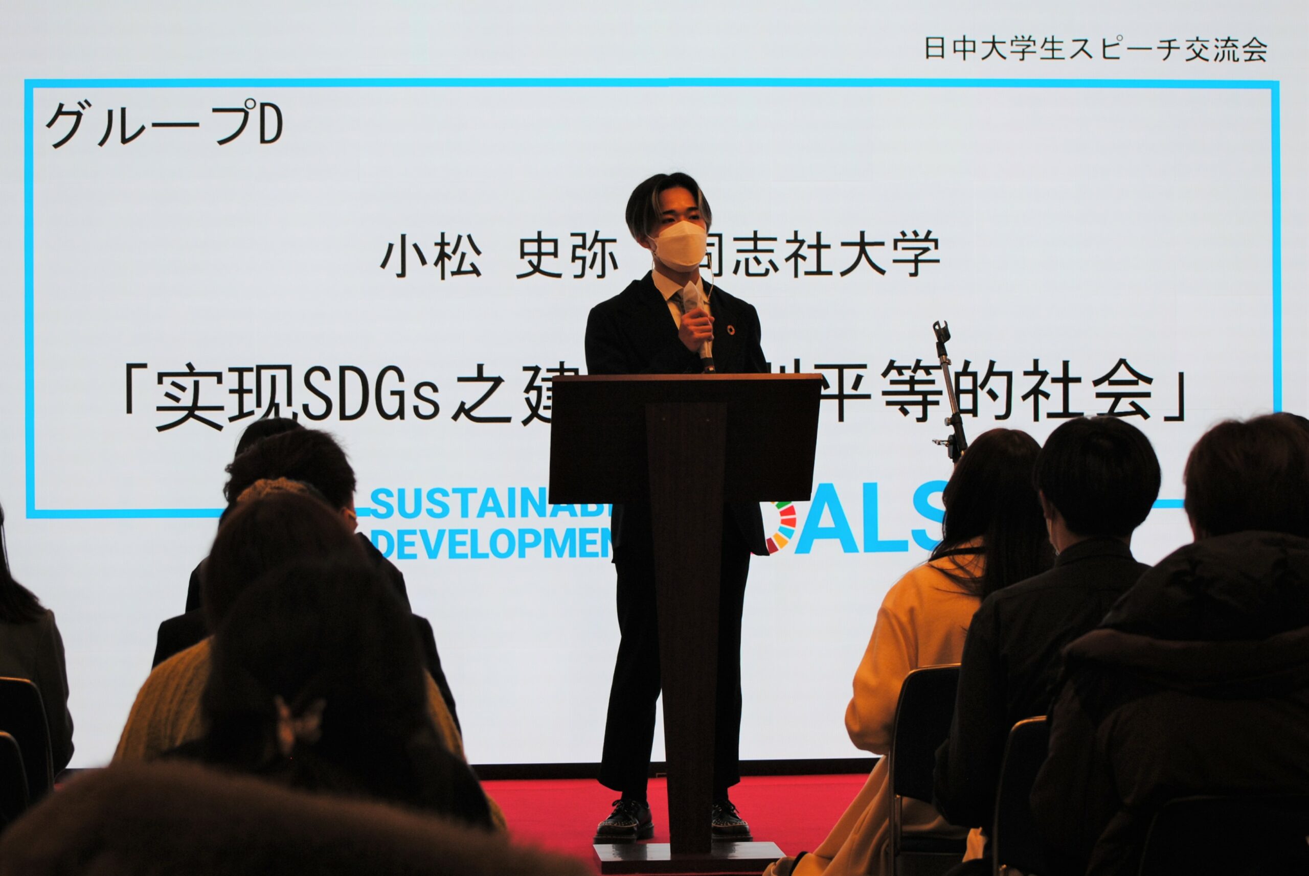全国230名の応募者から選ばれた日中の大学生30名が、二人一組で相互学習を行いスピーチを作成・発表をしました。第1回目となる今回は「日中の若者が考えるSDGs」を大テーマとし、日本人学生は中国語で、中国人学生は日本語でスピーチを作成。交流会当日は3ヶ月の相互学習の成果をスピーチを通じて発表しました。
