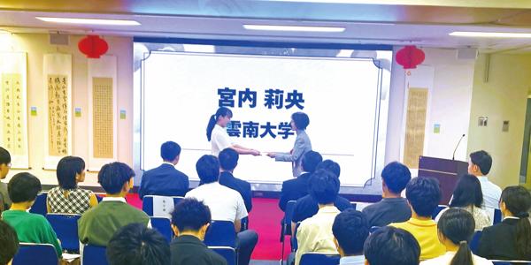 ひとりひとりの発表後には、中国留学友の会の林千野会長より、1年間の中国留学を無事終えたことを証する修了証が授与された。1年間という、長いようでいて振り返ればあっという間の留学期間の中では、楽しいことばかりではなく、言葉や文化の壁に戸惑うこともあったかと思うが、林会長から修了証を受け取る留学生たちの表情には、どことなく達成感のようなものが見て取れた。