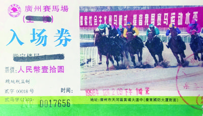⑤は広州競馬場(広東省)の入場券である。ご存知の通り、中国ではギャンブルが禁止されているが、馬術技能の向上などスポーツ振興の一環として、1993年に競馬場が開設された。ちゃんと「馬彩」という馬券も発売されており、白熱したレースにスタンドは大いに盛り上がっていた。
