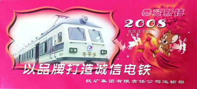 ⑥は撫礦集団運輸部が新年に配ったカレンダー(遼寧省)である。撫順市は石炭産業が盛んで、石炭輸送や従業員の通勤を担うローカル私鉄が活躍していた。カレンダーには路線図(⑦)が載っており、複数の支線を有していたことが分かる。ただ、筆者はごく短い区間しか乗車していない。骨を刺すような寒風が吹きすさび、数少ない電車を待っていられなかったからだ。
