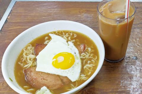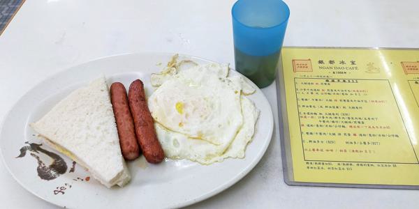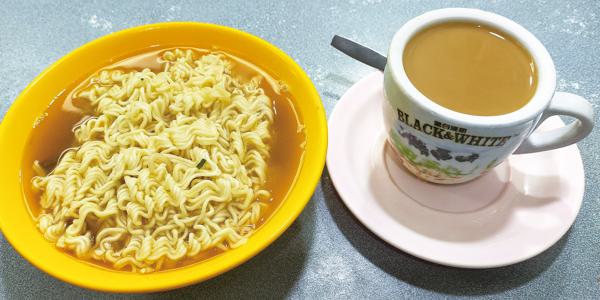 香港には「茶餐廳」という喫茶店も存在するが、冰室とは営業許可のライセンスが異なっており、こちらは提供可能なフードメニューが幅広い。冰室の場合は、サンドイッチ、トースト、即席麺、マカロニスープなどをメインに、ハム、ソーセージや卵料理と飲み物のセットが定番。即席麺を愛好するのが香港らしさといえるが、なかでも日本でもおなじみの「出前一丁」は絶大な人気を誇り、メニューに「出前一丁に変更すると〇〇ドル追加」と書かれていることが多い。