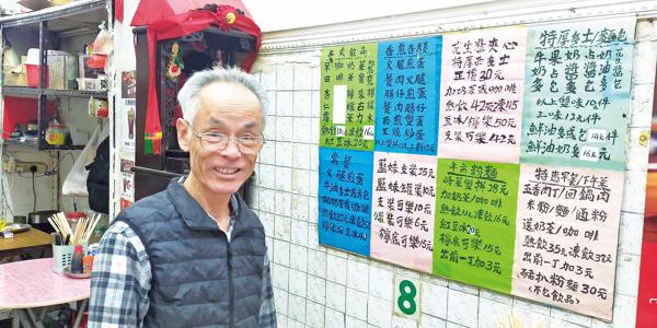 店内(写真⑦)は古い香港映画に出てきそうな味わいがあった。開業は1950年代で、フレンドリーな店主の鐘さん(写真⑧)は3代目。父親が「開記冰室」を買い取り、その際、「開記協和冰室」と改めたのだという。看板に(協和)と記してあったのは、そういう経緯があったのだ。