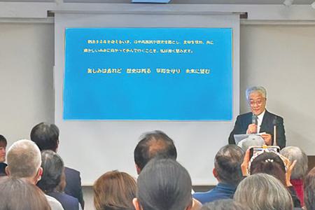 私たちは、正しい歴史認識のもと、世界の平和を誰よりも願い、心に届く友好活動を、今こそしていかなければならないと思います。