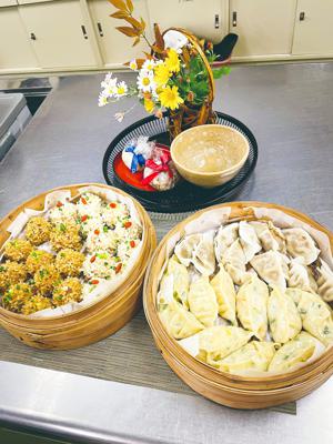 今年は「中国茶と日本茶の飲み比べ」をテーマに、中華料理店を営む柳沢千暁さんを講師に迎え、〝飲茶〟として4種類の点心料理に取り組みました。〝蒸し〟の時間中には、程艶春さんが中国茶の手ほどきを、中国琴の調べにのせて披露。蒸しあがった飲茶は、白と茶の美しい米だんごに可愛いクコの実と青ネギが彩りを添え、とても美味しく、また彩りのよい野菜たっぷりの餃子と、牛肉と葱姜水によって風味豊かな餃子に、歓声が上がるほどでした。そこに日本の炊き込みごはんも添えられ、楽しい昼食会となりました。