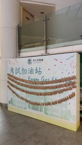 試験期間に校内に設置された考试加油站。皆意気込みを書いたり、励ましあったりしている。
