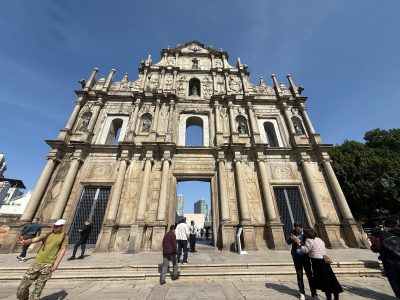 マカオの街並みの様子。この写真は大三巴という世界遺産。この場所が好きで、よく息抜きに観に行っている。