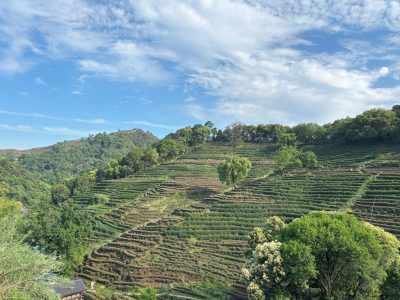 お茶で有名な龍井村の茶畑。一面の茶畑が広がる壮大な光景だった。