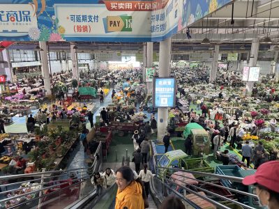 同じドミトリーに泊まっていた、中国人の大学教師の方に昆明を案内していただくことができ、巨大な花市場や青果市場、名物であるキノコ鍋やコーヒーを堪能しました。