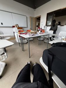 轻松英语が始まる前の様子。お菓子やジュースを持ち寄って参加。 楽しかったです。