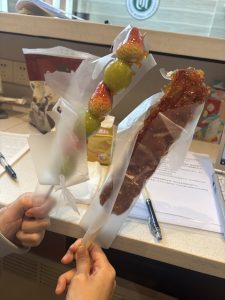 受付当番中に、「これが中国の冬の味だよ!」と言って外卖で私の分まで糖葫芦を頼んでくれました。