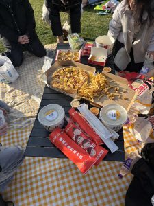 クラスメイトと班主任、先生と一緒に公園でピクニックをしました。