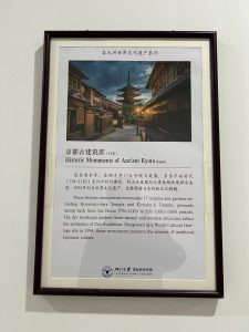 浙江大学国際教育学院内で掲示されている世界遺産シリーズに、京都が紹介されていた。日本に興味を抱いて、日本のことを学びたい!と意欲的な学生は多くいる。
