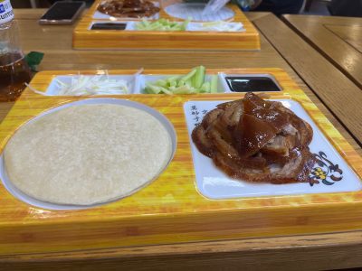 北京ダック一人前560円。外パリッと中はジューシーです。