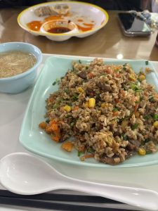 第三食堂の学食.牛肉チャーハン18元.美味しすぎて感動しました.
