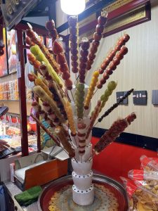 友人と話題の「奶皮子冰糖葫芦」を食べに行きました。フルーツの間の白いものはヨーグルトです。歩きながら食べていると、小さな女の子が後ろで、「私も欲しい」と言っているのが聞こえてきて、とてもかわいらしかったです。