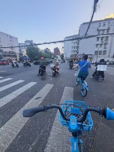 電気自動車の普及度についても、上海は驚くべきものがあります。日本では電気自動車は時折見かける程度で、ガソリン車が主流という印象でした。しかし上海では、街中で見かける車のほとんどが電気自動車であり、バイクも電動式が多いため、交通量が多いのにとても静かです。タクシーもほとんどが電気自動車で、走行音が静かで揺れも少なく、快適な移動ができることに感動しました。