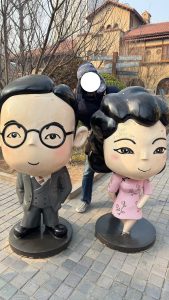 静园入り口での一枚、ゆるキャラのようになった溥儀が出迎えてくれます。