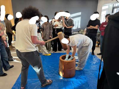 12月中旬、同じ大学に留学している日本人学生と共に、餅つきパーティーを開催しました。本報告では、開催に至るまでの準備過程および当日の様子について記します。10月末に実施し好評を得たたこ焼きパーティーに続き、新たな日本文化体験の機会を設けたいと考え、日本の新年文化を代表する行事である「餅つき」を実施することとなりました。